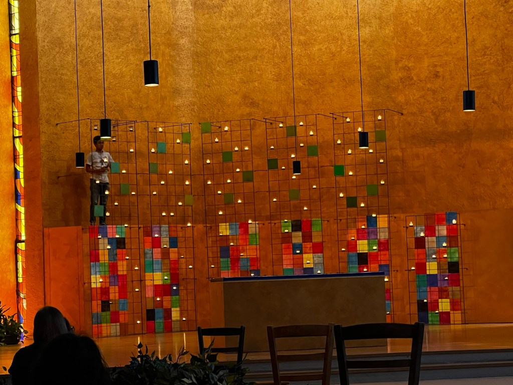 Worship is about 30 minutes long. One theology professor I talked to said he like it because it was a “no preaching zone.” They sing multiple songs, read scripture, have 8 minutes of silence and reflection, sing the prayers, and then sing some more. Communion is open to all and offered everyday at the 8:00 am service.