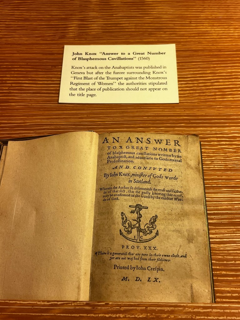 While there are many displays of communion items, baptismal fonts, and documents, what I found most interesting was this copy of the Book of Common Order, a.k.a. Knox’s Liturgy. We still have a Book of Order today, a living document to give structure as well as adaptability and freedom to our way of being the church.