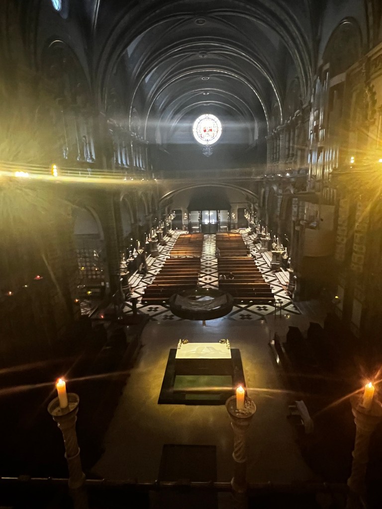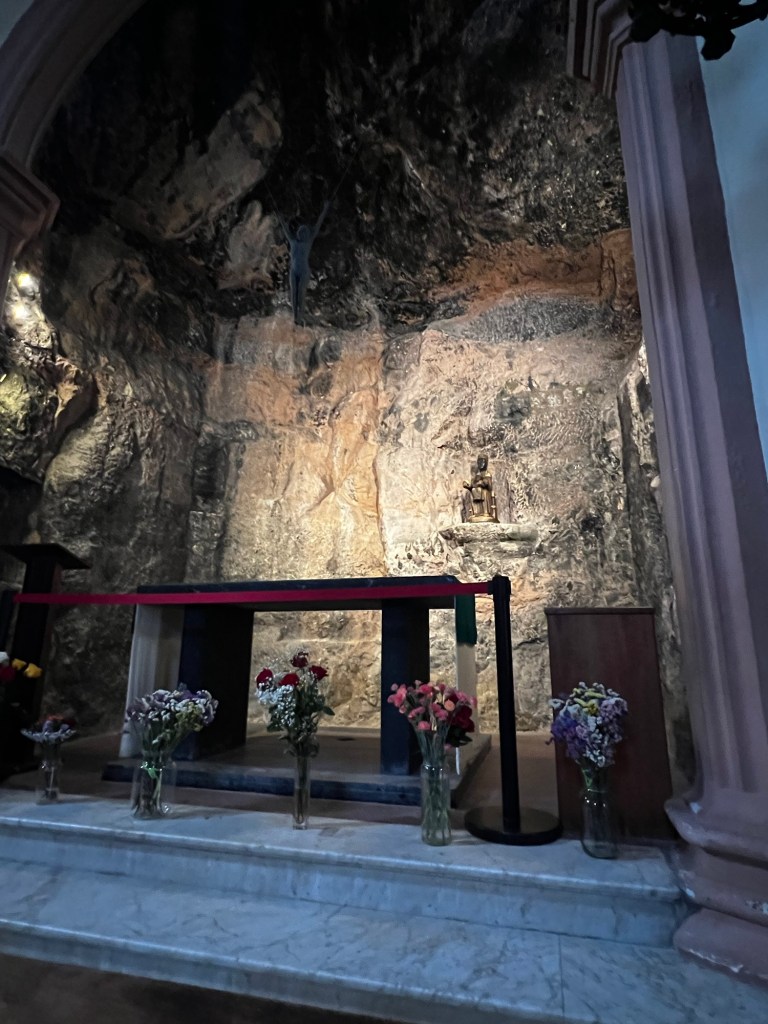 So why is this a place of pilgrimage and what’s so important about this statue? The legend says that in the year 880, shepherds took their flocks to graze upon the mountain. Suddenly, as night began to fall, the shepherds saw a great light and heard celestial singing, strange signs that led to a cave on the mountain of Montserrat. This is that cave.