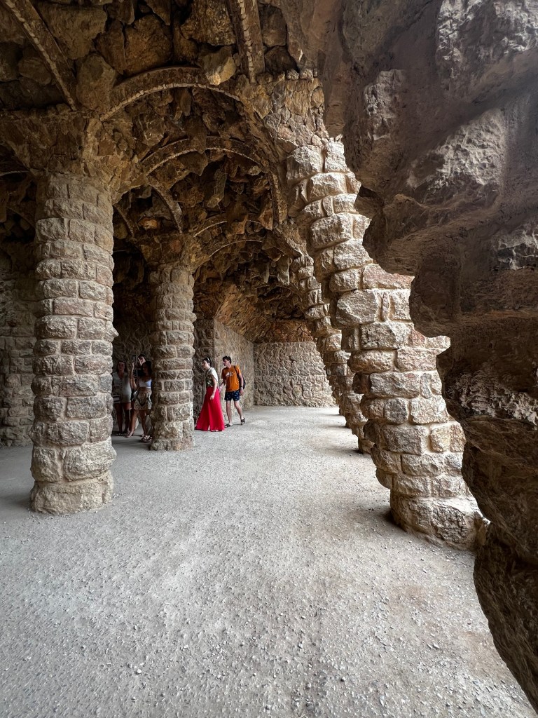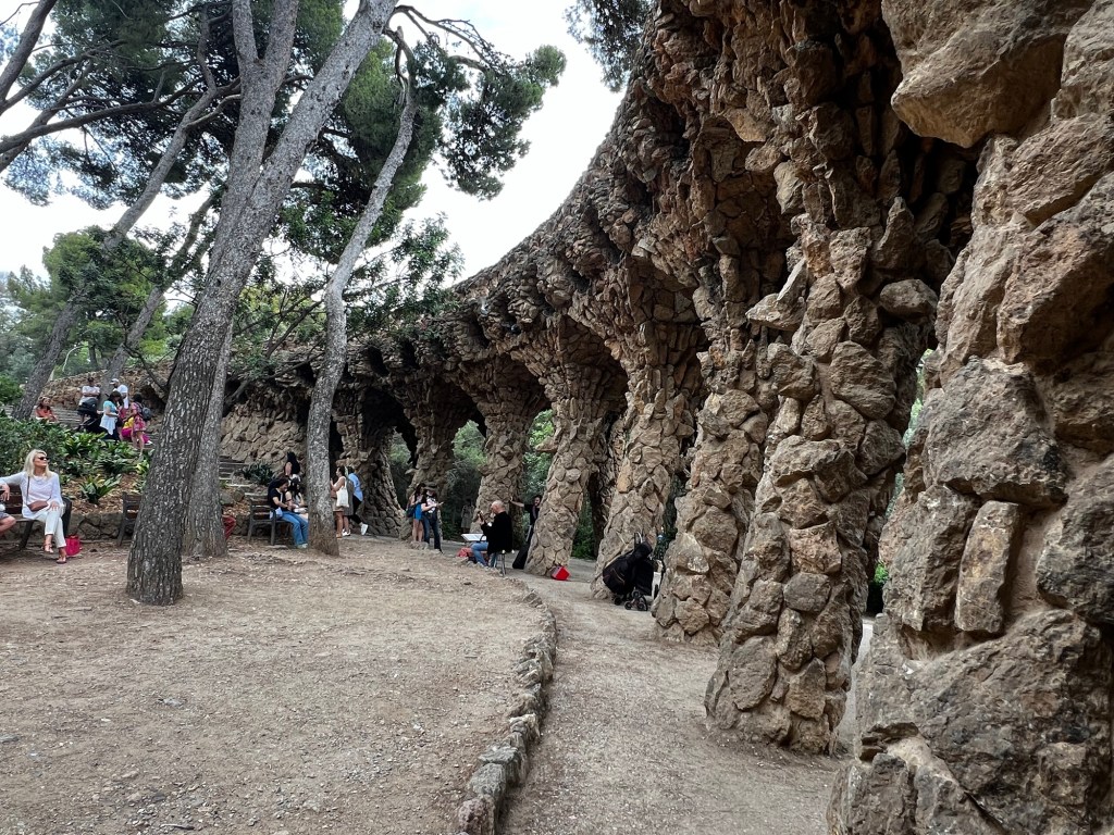 This was an entire neighborhood Gaudi was creating for the upper class outside of Barcelona. Unfortunately, the project had to be abandoned due to lack of interest. At the time, there were no roads to get there and it was considered too far away from the city. So they turned it into a park. Gaudi built aqueducts…