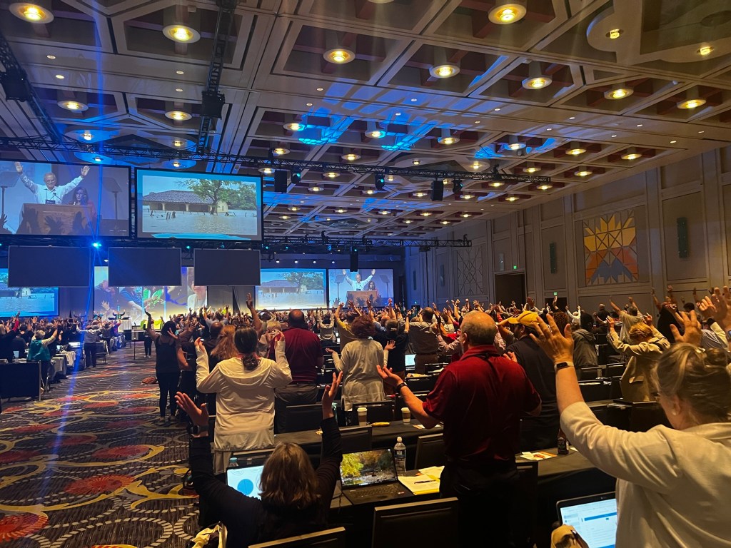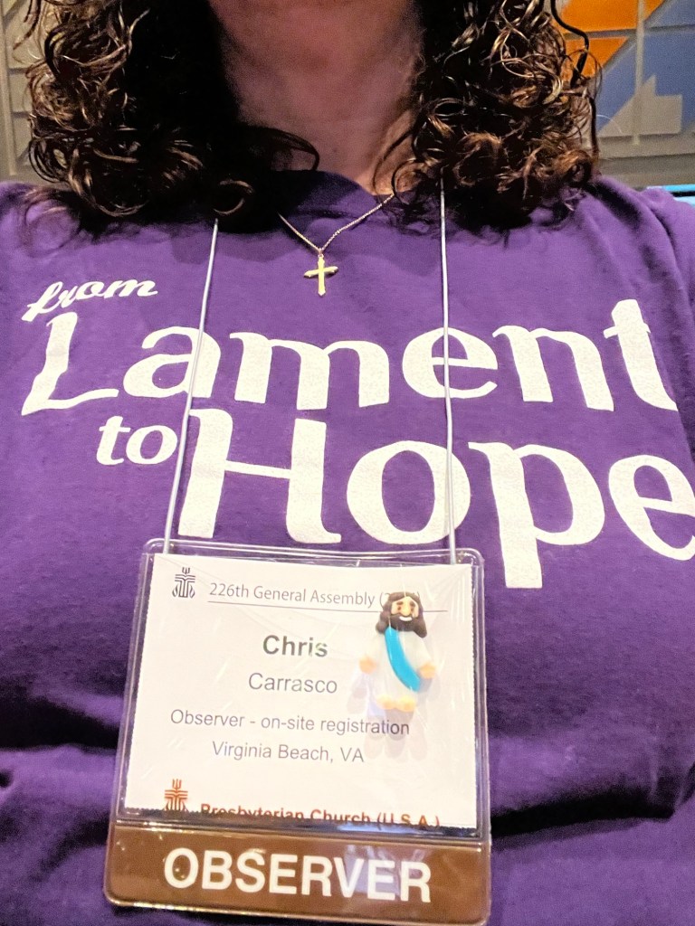 Delegates first have several days of committee meetings where they discuss and make recommendations on each item before them. Then they all gather together for several more days to hear the committee’s recommendations and make final decisions. I have been a delegate twice: in 2014 in Detroit and 2020 during Covid online. The 2020 General Assembly had the theme, Lament to Hope