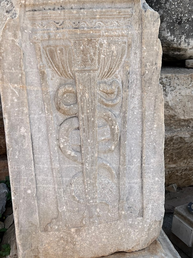 These two stone pillars with carved reliefs were directional signs. One was Hermes, the god of merchants, and pointed the way to the market. The other was of Asklepios, the god of medicine, which was across from a pharmacy. With thousands of tourists arriving in Ephesus even in ancient days, these roads signs helped people know where to go.