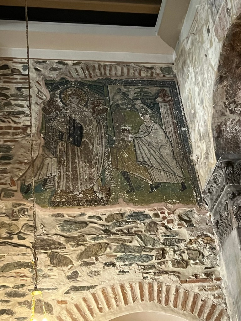 We gathered to read the scripture in Acts 17:1-9 and as we walked around, we noticed this ancient centuries old frescoes.